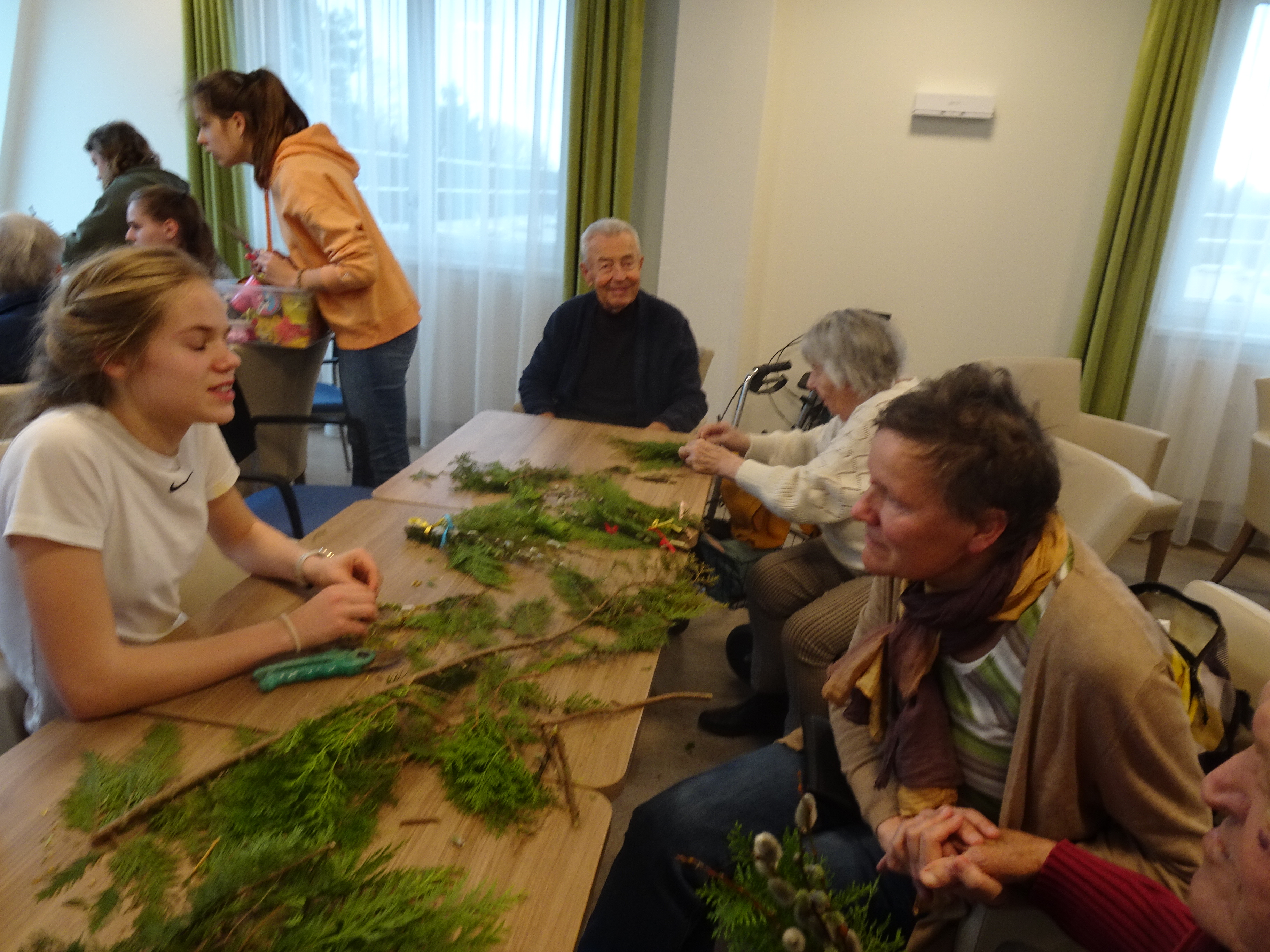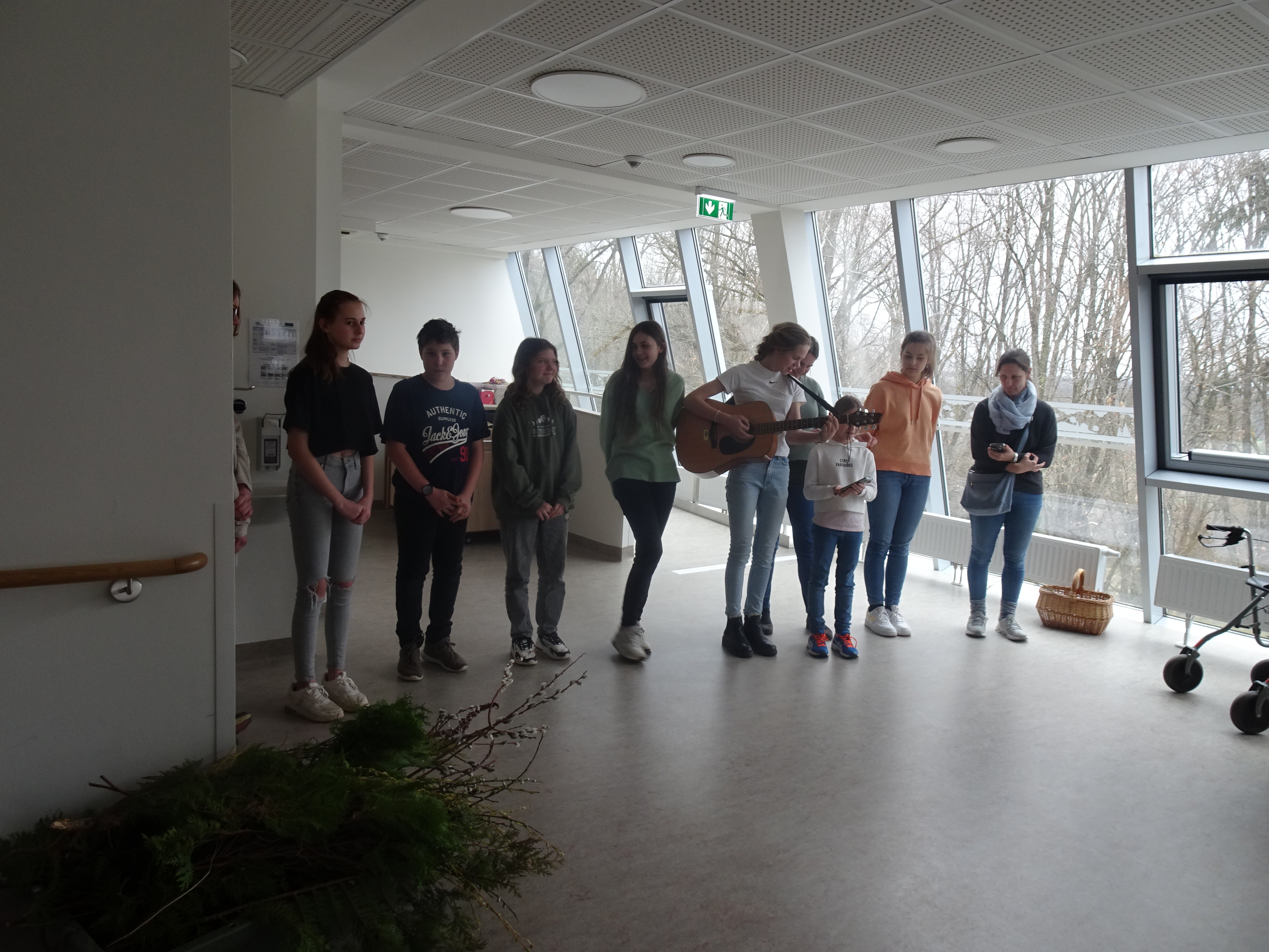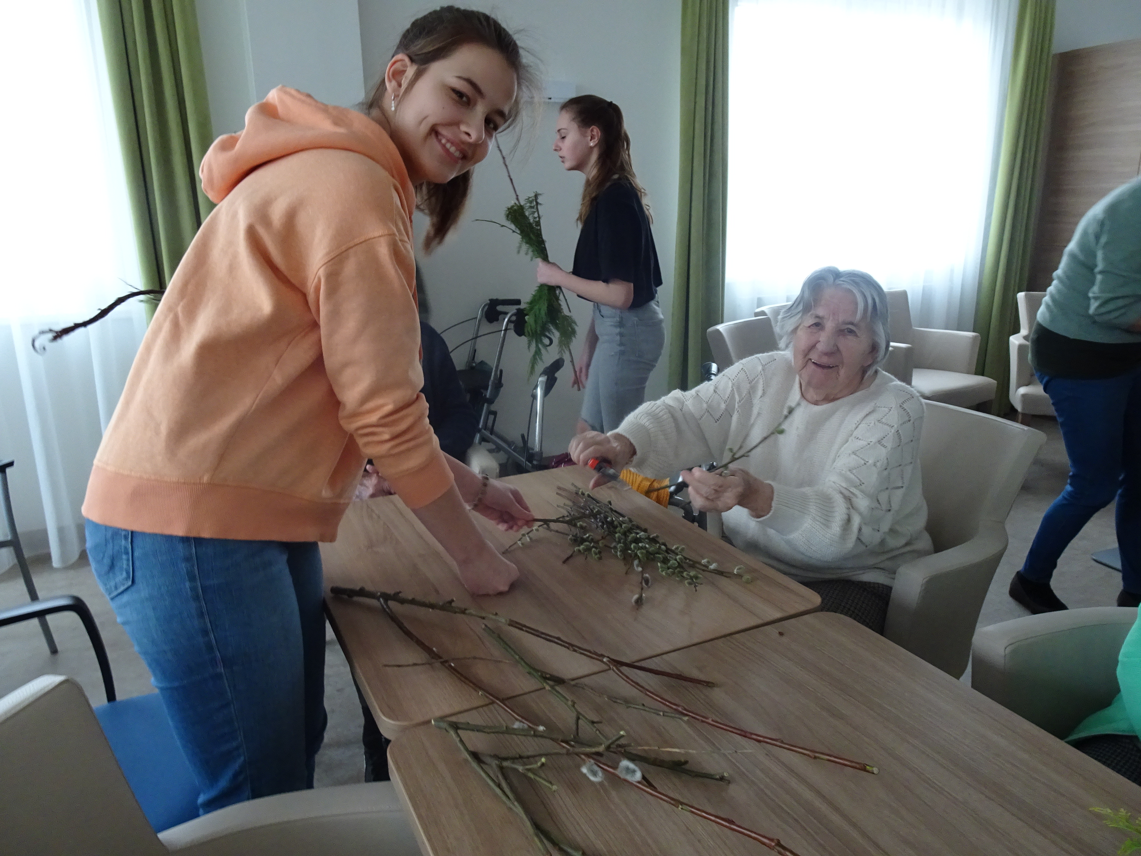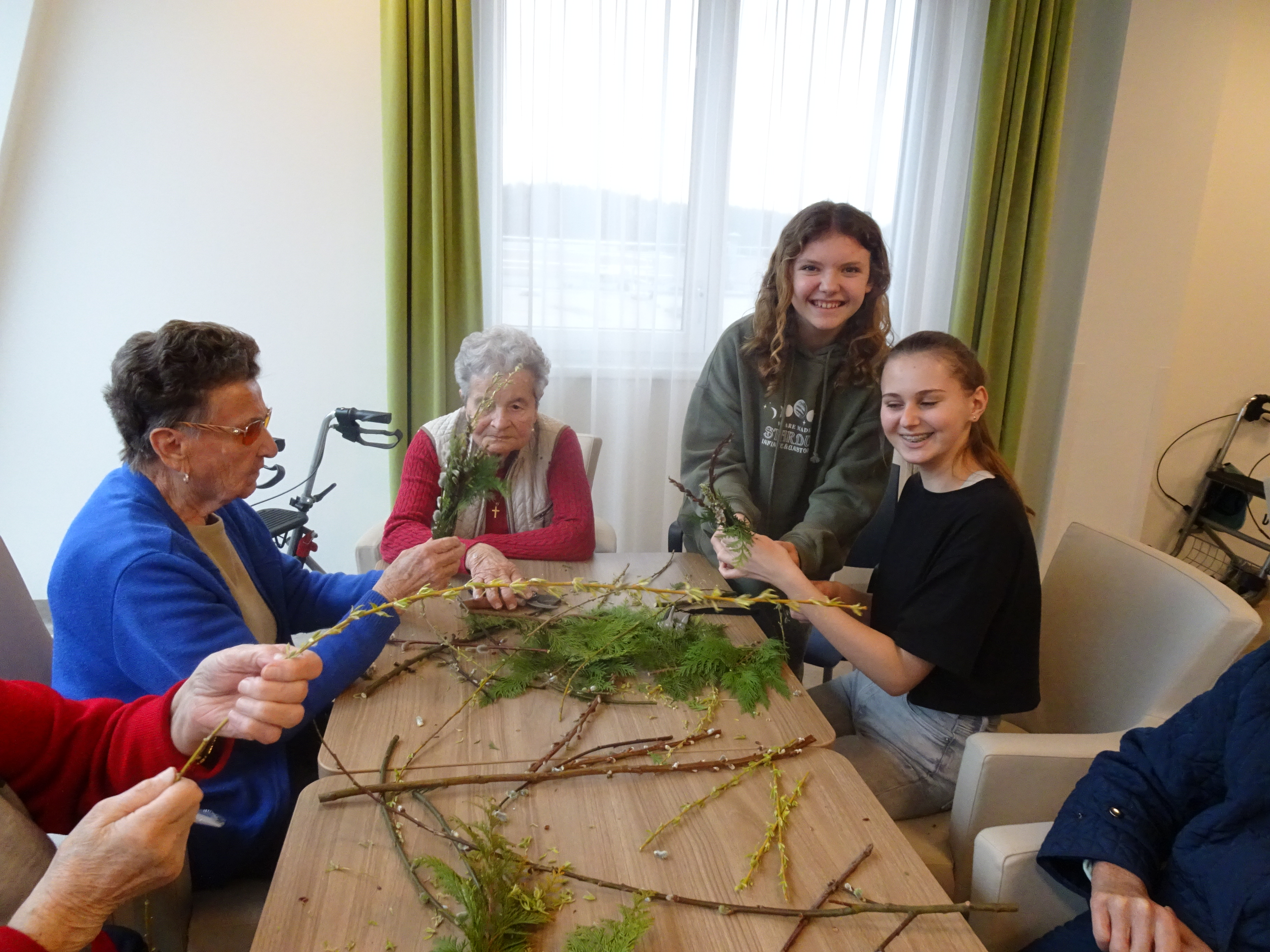 Vor Kurzem erhielt das SeneCura Pflegezentrum Schwarzau Besuch der Schwarzautaler Firmgruppe aus der Mittelschule Wolfsberg. Begleitet von den Müttern, Haiden Erika und Trummer Martine lernten acht Firmlinge das Pflegezentrum und die Bewohner:innen des Hauses kennen. Bei gemeinsamen Spielen, stimmungsvoller Musik durch die Firmlinge, frühlingshaften Ostervorbereitungen, wie Palmbuschen binden und einem fröhlichen Miteinander genossen die Anwesenden die gemeinsame Zeit.