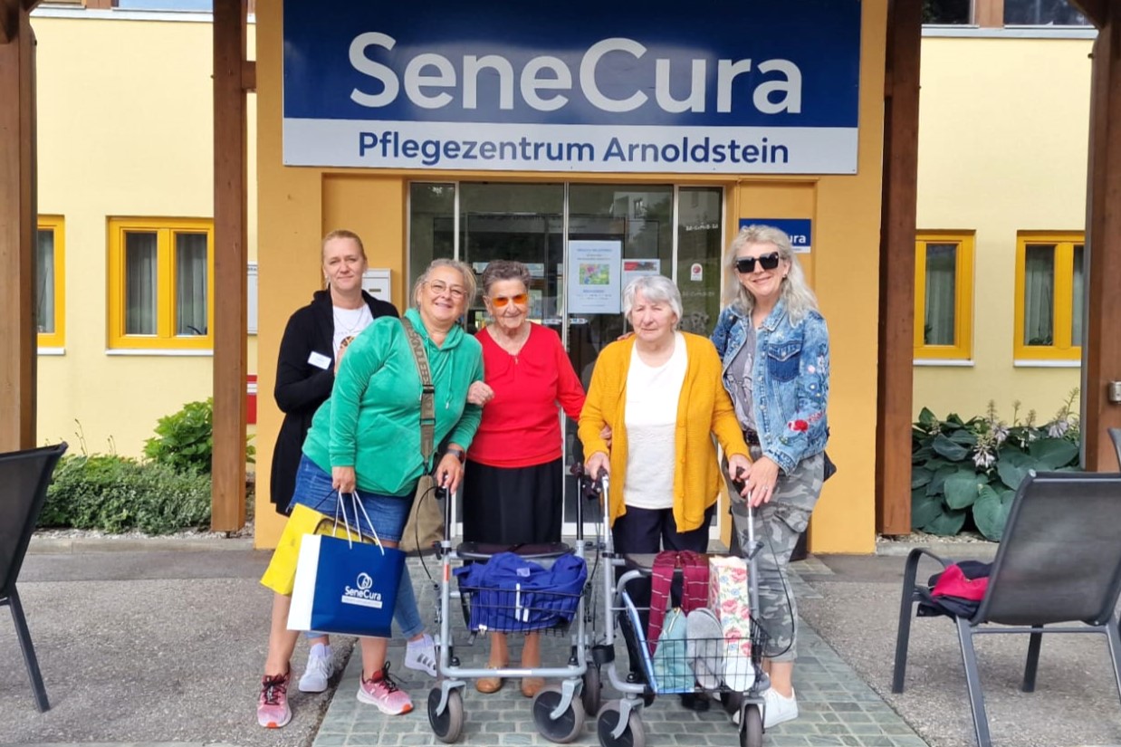 Im Sommer startet für viele Menschen die Urlaubssaison – so auch für die Bewohner:innen der SeneCura Pflegezentren Arnoldstein und Schwarzau. Pflegedienstleitung Maria Fuchs und Seniorenbetreuerin Alic Celic Azra organisierten nämlich ein einwöchiges Austauschprogramm für jeweils zwei Bewohner:innen der Häuser. Das SeneCura Pflegezentrum Arnoldstein durfte Elfrieda Gutjahr und Hilda Höfer bei sich willkommen heißen und im Gegenzug durften die Kärntner Bewohner:innen Hilde Satler und Margarethe Boezio das steirische Haus und seine Umgebung kennenlernen. „Ich habe mich riesig gefreut, Teil des Urlaubsaustausch sein zu können und dass ich sieben wundervolle Tage im schönen Kärnten verbringen durfte. Wir haben viele liebe neue Freund:innen kennengelernt und die Auszeit in vollen Zügen genossen“, so Elfrieda Gutjahr, Bewohnerin des SeneCura Pflegezentrums Schwarzau, begeistert.