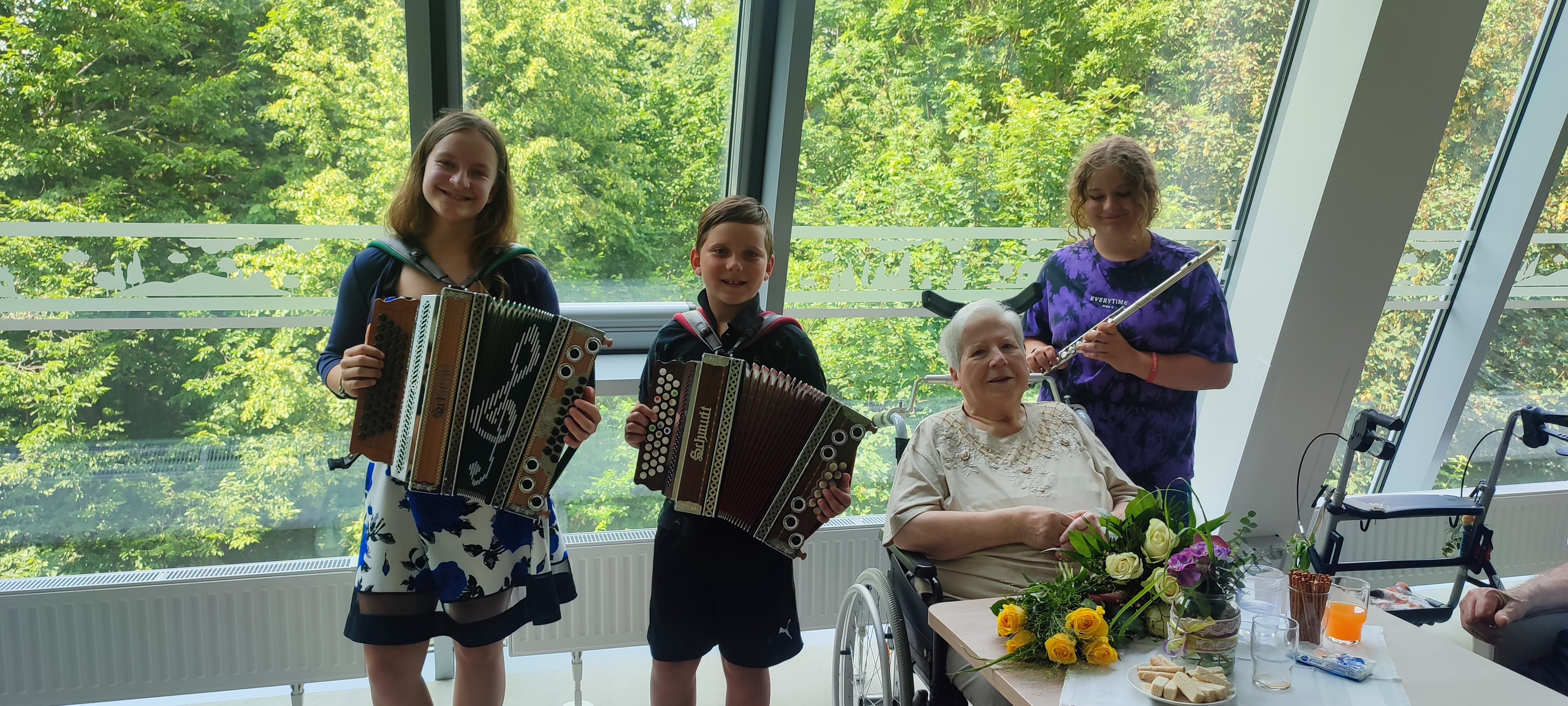 Im SeneCura Pflegezentrum Schwarzau ist immer was los! Besonders im Sommer werden viele verschiedene Aktivitäten angeboten – hier ist für jede Bewohnerin und jeden Bewohner der passende Programmpunkt dabei. So fand kürzlich ein schwungvolles Konzert statt und die Bewohner:innen gestalteten davor gemeinsam bunte Blumengestecke, die beim Konzert als Tischdeko verwendet wurden. Die Senior:innen genossen die musikalische Unterhaltung durch die Kinder sehr und freuen sich schon auf den nächsten Besuch!