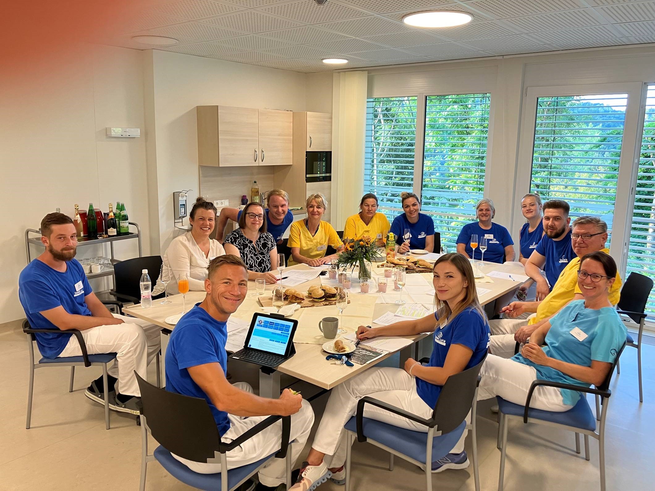 Glückliche Momente muss man feiern! Hausleitung Julia Junger und das Team des SeneCura Pflegezentrums Schwarzau überraschten Pflegedienstleitung Claudia Neubauer an ihrem ersten Arbeitstag bei der Dienstübergabe mit einem (alkoholfreien) Sektfrühstück. Frau Neubauer kehrt nach ein paar Monaten Schaffenspause in ihr Stammhaus zurück. Es gibt Augenblicke in jedem Team. die festgehalten werden müssen. Das Team und Julia Junger wünschen ihr alles Gute für den Start!