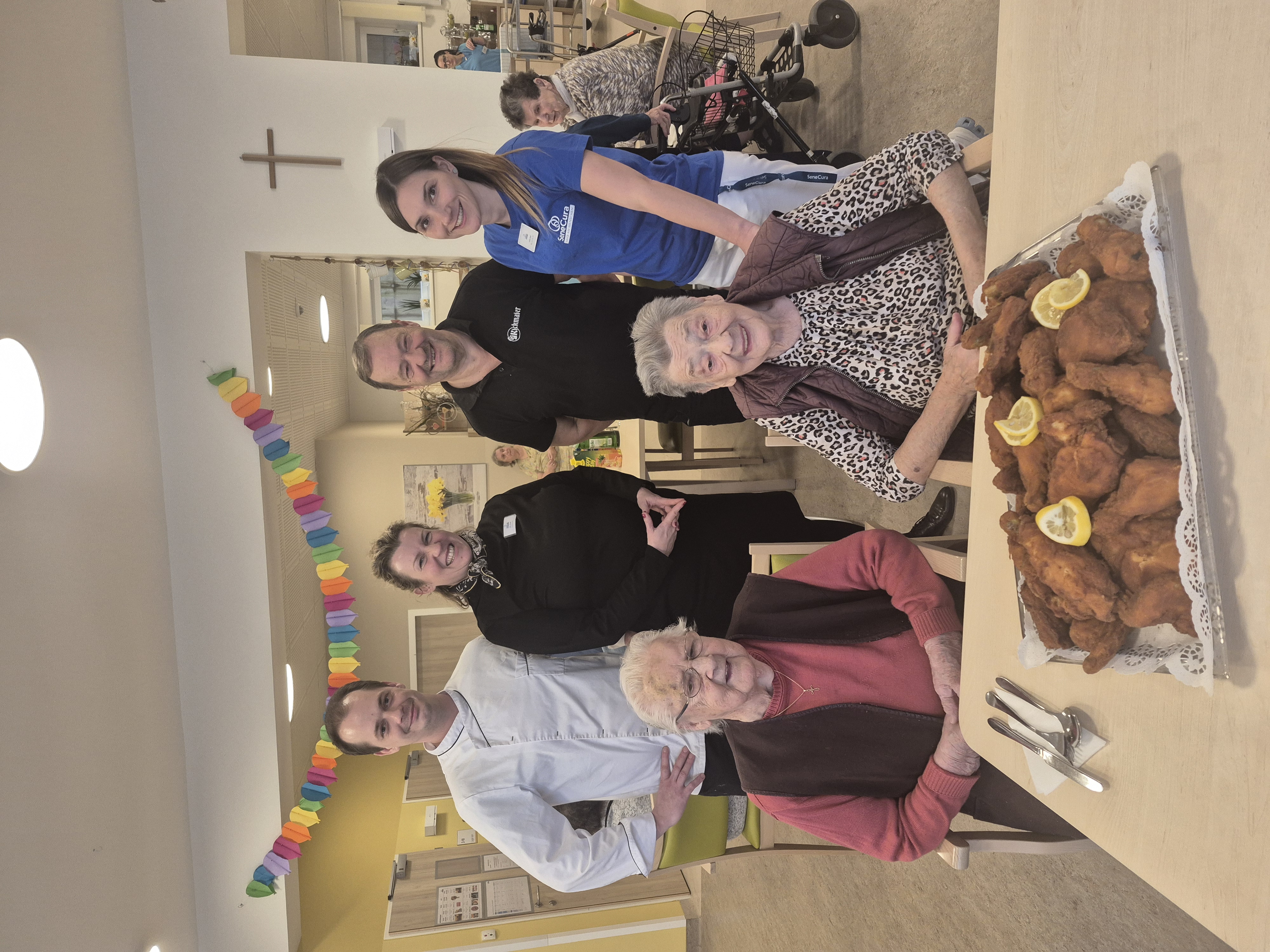 Schon das zweite Mal hat das überregional bekannte Gasthaus „Backhenderlstation Kickmaier“ anlässlich des Geburtstages von Altwirtin Frau Theresia Höfler aus der wunderschönen Südoststeiermark zum In House Backhenderlessen im SeneCura Pflegezentrum Schwarzau eingeladen. Sowohl die Bewohner:innen als auch das Team wurden eingeladen und verköstigt.